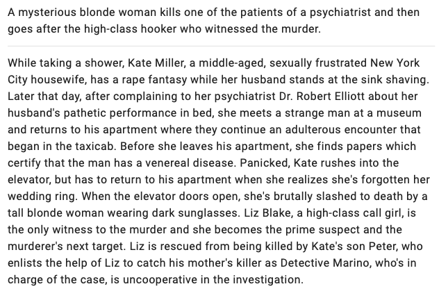 I keep seeing the same person at stop signs in the neighborhood around my house. A woman in a slick black Jaguar, with tousled blonde hair, and bright red lipstick; but attractive, beautiful, and a real woman; not like the disturbed trans woman in Brian De Palma’s ‘Dressed To Kill’ (1980).